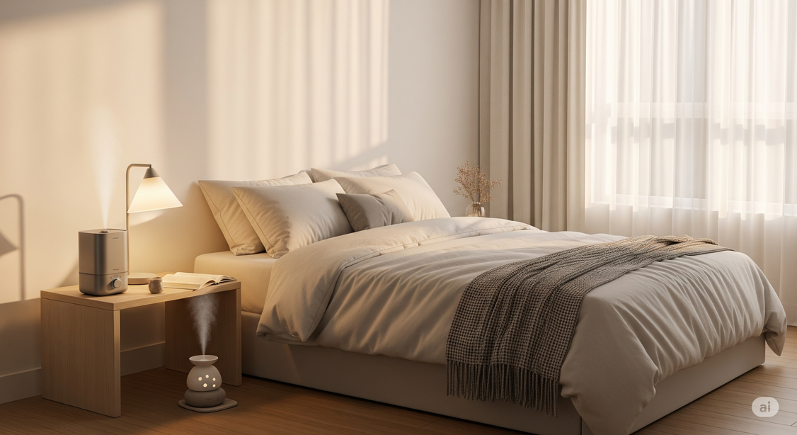 - 湿度を調整する: 湿度は**40%~60%**が理想です。乾燥しすぎると喉や鼻が痛み、多湿すぎると寝苦しくなります。加湿器や除湿機をうまく使い分けましょう。